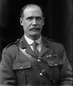 When the First World War began in 1914 Marescaux was still a newly promoted rear-admiral and was thus very junior, having ten admirals immediately senior to him. This meant that he would be passed over for command vacancies in favour of more senior admirals, and so he requested that he be seconded to the War Office so that he could still see active service.[58] As such, he was appointed a temporary lieutenant-colonel in the Reserve of Officers of the British Army on 8 November.[59][60] In this new position he served through the year as Assistant Military Landing Officer at Le Havre before, on 28 May 1915, he was appointed Deputy Assistant Quartermaster General at Boulogne.[1][61] Marescaux was mentioned in despatches by Field-Marshal Sir John French on 31 May,[62] and was appointed a Companion of the Order of St Michael and St George on 3 June.[63] He voluntarily retired from the Royal Navy on 4 November.[64][30][65]