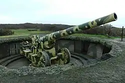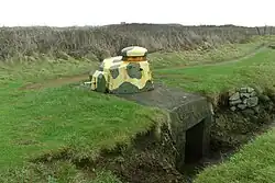 Twenty one of the casemates built into the coast were designed for 10.5 cm K 331(f) French guns that had been acquired in large quantities. An additional 13 being mounted in open field positions.[4]: 9 A casemate with a 10.5 cm gun has been restored at Hommet headland, north of Vazon and is open to the public.