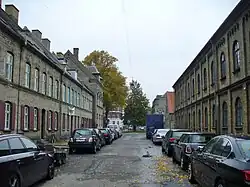 The Nyboder houses that now line part of the street do not date from Christian IV's time but are later models. The yellow, two-storey terrace at No. 2-18 is an example of the houses that now dominate the quarter. They date from the 1750s and were designed by Philip de Lange. The terraces at No. 17-31 and No. 24-44 are examples of the so-called Grey Rows that were built between 1886 and 1893 to design by Olaf Schmidt with inspiration from Arbejdernes Byggeforening's building society houses.