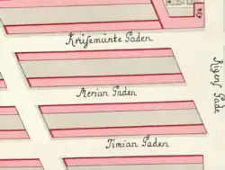Hinde Længden was later renamed Nygade (New Street) while Gamlegade was renamed Kanelgade (Cinnamon Street). In 1859 Nygade was renamed Gernersgade to commemorate the naval officer and shipbuilder Henrik Gerner. Kanelgade and Meriangade was included in Gernersgade in 1893.[2]