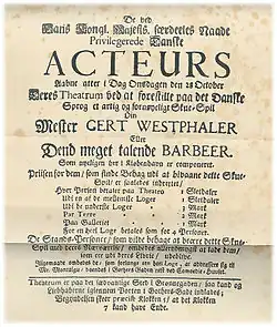 ![]() Gert Westphaler poster, the oldest preserved poster for a Holberg play | |