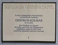 - ^ a b c d Krick-Aigner, Kirsten (6 November 2023). "Gertrud Kolmar". Encyclopedia of Jewish Women. Jewish Women's Archive. Retrieved 30 April 2024.