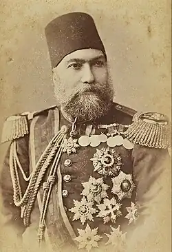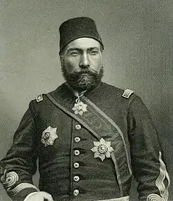 Osman Nuri Pasha (Ottoman Turkish: عثمان نوری پاشا‎; 1832, Tokat, Ottoman Empire – 4 to 5 April 1900, Constantinople, Ottoman Empire), also known as Gazi Osman Pasha (Turkish: Gazi Osman Paşa), was an Ottoman Turkish field marshal.[1][2] Being one of the most respected and decorated Ottoman pashas of all time, many songs have been written for him, and many places named after him. This is mainly because he held the Bulgarian town of Plevna for five months against superior Russo-Romanian forces in 1877 during the Russo-Turkish War, though the city eventually fell.
