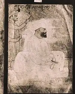 ![]() Seated portrait of the Rohilla ruler Ghulam Muhammad Khan of Rampur State, inscribed with Nagari script, circa 18th century | |||||