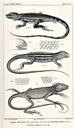 - ^ Nguyen, N.S., Golynsky, E. & Milto, K. 2018. Leiolepis guttata. The IUCN Red List of Threatened Species 2018: e.T99931306A99931310. https://www.iucnredlist.org/species/99931306/99931310. Downloaded on 20 December 2020.