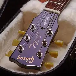The Studio Swamp Ash (LPSANSCH1) was manufactured between 2003 and 2011.[7] Built in Nashville, Tennessee, its body is made of a carved swamp ash top over a multi-piece swamp ash back. The neck is made from mahogany and is "set" into the body. The fretboard may be either ebony, granadillo or rosewood, depending on production year. It has a standard body, no pick-guard, chrome plated hardware, and dot-type fret markers, a silkscreen Gibson headstock logo and the usual studio truss rod cover.[8]
