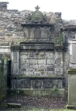 ![]() Mural monument at the tomb of Gilbert Primrose in Greyfriars Churchyard, Edinburgh | |