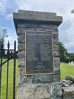 Gilead Cemetery is located in the town of Carmel, New York, United States. It is off a bend in Mechanic Street 1.5 miles (2.4 km) south of the hamlet of Carmel, seat of Putnam County.