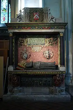 - "Here lyes the bodies of Sir John Young knight and Dame Joan his wyfe. By him she yssued Robert, Jane and Margaret. She was fyreste marryed to Sir Gyles Straingwayes knight by whome shee had yssue John, Edward, George, Nicholas, Ann and Elizabeth. She was daughter to John Wadham esquire and she departed this mortall lyfe the 14th June 1603 aged 70 yeeres".