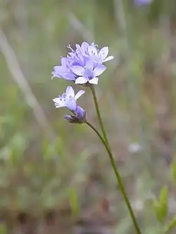 The plant is erect with long stems that bear bunches of funnel-shaped lavender flowers. It is a member of the phlox family.