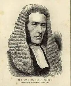 Pigott was made a Baron of the Court of the Exchequer on 3 October 1863, and was knighted on 1 November. The appointment was initially received with disfavour by the bar, but he became well-liked and recognised for strict impartiality and conscientiousness in his arbitration.[3]