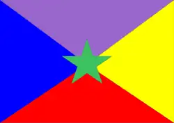 The regions have a color scheme: blue for Munchkins, yellow for Winkies, red for Quadlings, green for the Emerald City, and (in works after the first) purple for the Gillikins, which region was also not named in the first book.[9] This emphasis on color is in contrast with Kansas; Baum, describing it, used "gray" nine times in four paragraphs.[10] In The Wonderful Wizard of Oz, this is merely the favorite color of each quadrant, used for clothing and other man-made objects, and having some influence on their choice of crops, but the basic colors of the world are natural colors.[9] The effect is less consistent in later works. In The Marvelous Land of Oz, the book states that everything in the land of the Gillikins is purple, including the plants and mud, and a character can see that he is leaving when the grass turns from purple to green, but it also describes pumpkins as orange and corn as green in that land.[11] Baum, indeed, never used the color scheme consistently; in many books, he alluded to the colors to orient the characters and readers to their location, and then did not refer to it again.[12] His most common technique was to depict the man-made articles and flowers as the color of the country, leaving leaves, grass, and fruit their natural colors.[13]