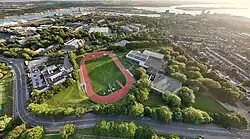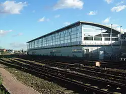 The main source of employment was at Chatham Dockyard, two-thirds of which lay within the boundaries of Gillingham. When it ceased to be a naval base in 1984, there was significant unemployment. A World Heritage Site application has been made for the Dockyard and its defences.[14] Since the 1980s, Gillingham has rebuilt its economic base and the Gillingham Business Park was set up 3 miles (4.8 km) from the town centre, to attract investments and diversify economic activity.[15] The business park and ice rink were an early commission for Grimshaw Architects.[16]