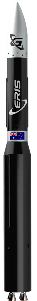 Gilmour Space is currently developing its Eris Block 1 rocket, a three-stage small-lift launch vehicle designed to carry up to 300 kg of payload to low Earth orbit. The vehicle is known to have four of Gilmour's Sirius hybrid rocket motors propelling the first stage, another Sirius motor in its second stage, and a new Phoenix liquid rocket engine in its third stage. Eris has a height of 25m and a diameter of 2m for the first stage, which tapers at the interstage of the first and second stage to 1.5m.[18] The payload fairing has 2 diameter versions, either 1.5m or 1.2m.[19] Eris Block 1 will be the first Australian orbital rocket to launch from Australia, and the first orbital launch attempt from Australia in over 50 years. Moreover, if successful, Eris could be the world's first hybrid rocket to achieve orbit.
