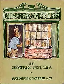 The Tale of Ginger and Pickles (originally, Ginger and Pickles) is a children's book written and illustrated by Beatrix Potter, and first published by Frederick Warne & Co. in 1909. The book tells of two shopkeepers who extend unlimited credit to their customers and, as a result, are forced to go out of business. It was originally published in a large format which permitted very detailed illustrations and also allowed Potter to include black-and-white vignettes. Potter filled the tale with characters from her previous books. The book was eventually republished in the standard small format of the Peter Rabbit series and was adapted to drama in 1931.
