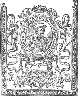 Depiction of Georgio Lapazaia in a frontiespiece found in his work (1575)
