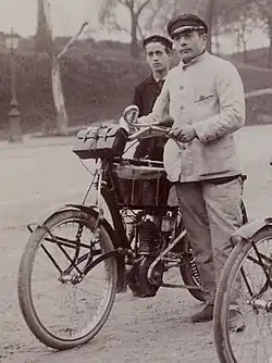 Giuppone's sporting career began in bicycling, and he won two Italian national championships in middle-distance racing. He moved to motorcycle racing in the early 1900s, most notably for the Peugeot racing team. He was the second Italian rider to compete in the Isle of Man Tourist Trophy. His races for Peugeot included extensive track racing on the large-capacity, ultra-lightweight racers of the early 1900s, which typically weighed a maximum of 110lbs, but had unlimited engine capacity, as much as 2liters at times. He also raced Peugeot automobiles as part of the factory team, winning the Coupe des Voiturettes in 1909, the Torino Cup and the Copa Catalunya[2] and Circuito delle Madonie in 1908.[3] He also set a number of early motorcycle speed records.[4]