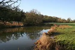 Much of the woodland is oak, with hazel coppice; other deciduous trees include aspen and wild service tree. The wood slopes down to a strip of flood meadow by the River Stour, where in summer there are dragonflies and damselflies among the sedges, burdocks and teasels.[2][3]