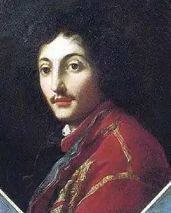 By 1701, at the age of 18, Giuliano was at the service of Marquis Ferdinando Capponi, as a groom.[8] Marquis Capponi was Knight of the Holy Military Order of Saint Stephen Pope and Martyr, Rector of the Priory of Pescia, Grand Chancellor and aide-de-chambre to the late Grand Duke Ferdinando II, then dignitary of the court of Grand Duke Cosimo III and Bracciere of the Great Princess Violante Beatrice of Bavaria.[9]
