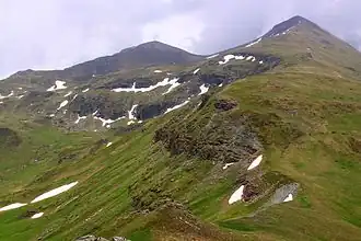 Gjini Beg (Albanian: Gjini Beg; Macedonian: Џини Бег, romanizedDžini Beg) is a peak in the Sharr Mountains found on the boundary between Kosovo and North Macedonia. Gjini Beg reaches a top height of 2,610 m (8,563 ft) and is totally covered with short grass. To the extreme south of Gjini Beg in Kosovo is the large Dinivodno Lake which is shaped like a circle and is 80 cm (31 in) deep.[1][2]