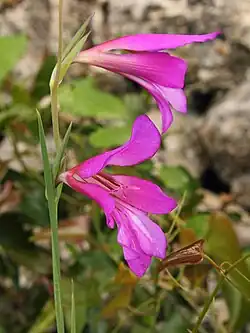 Gladiolus illyricus, the wild gladiolus, is a flowering plant in the family Iridaceae.[1][2] It is tall gladiolus that grows up to 50 centimeters (20 in) tall found in western and southern Europe, particularly around the Mediterranean region.