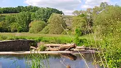 The Glan (German pronunciation: [ɡlaːn] ⓘ) is a river in southwestern Germany, right tributary of the Nahe. It is approximately 68 km (42 miles) long. It rises in the Saarland, northwest of Homburg. It flows generally north, through Rhineland-Palatinate, and empties into the Nahe near Odernheim am Glan, at Staudernheim, across the Nahe from Bad Sobernheim. Other towns along the Glan are Altenglan, Glan-Münchweiler, Lauterecken and Meisenheim.