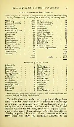![]() Statistics of the Glasgow Lock Hospital from its foundation, 7 August 1805 to 31 December 1881 page 9 | |