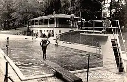 The surrounding property and spring were purchased by Gainesville businessman Cicero Addison Pound Sr. in 1924. Architect Guy Fulton designed the first pool and springhouse which was built soon after.[2][4][5][7] The swimming team from the University of Florida even practiced there around 1929[4] before the university pool was constructed in 1930. At that time, Northwest 23rd Boulevard was known as Glen Springs Road.[5] Pound's son stated that Glen Springs was the “only (public) place to swim near Gainesville”[2] until the pool at Westside Park was completed in 1966.[2] Glen Springs was, however, a segregated swimming area, open only to whites.[8][9][10]