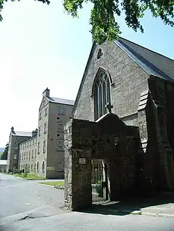 The Reformatory (shown to visitors) was originally a barrack, but was converted to its present purpose in 1859. From it we look right down the Glencree valley to the sea, and can imagine the utter desolation and bleakness of this spot in winter.[4]