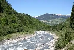 The river rises near the border with Ticino and is surrounded by up to 3100m high mountains. The river flows through the Lumnezia. In Suraua, the Vals Rhine flows into the Glogn. After a few more kilometers, the Glogn flows into the Vorderrhein at Ilanz. In the upper reaches of the river has cut a deep gorge, which has uncovered black shale in a few places. During the snow melt and after rains the river water is usually dark gray.