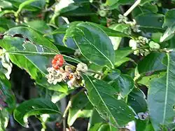Although the genus Glochidion is native only to the Old World, the East Asian species Glochidion puberum has become naturalized at several locations in the U.S. state of Alabama.[12][13]
