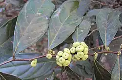 Glochidion puberum is a species of shrub or small tree in the family Phyllanthaceae. It is native to China, where it is widely distributed in both subtropical and temperate regions (Anhui, Fujian, Gansu, Guangdong, Guizhou, Hainan, Henan, Hubei, Hunan, Jiangsu, Jiangxi, Shaanxi, Sichuan, Yunnan, and Zhejiang provinces and Tibet and Guangxi autonomous regions). It has also been reported from Taiwan and Japan, and is morphologically very similar to the species Glochidion chodoense, endemic to southern South Korea.[1][2] In Mandarin it is known as 算盘子 (suanpanzi), which also refers to the genus Glochidion as a whole. In China it is used for medicinal purposes.