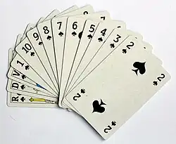 - Commonly refers to the Deuce or Two in German-suited packs which don't have real Aces. Often the highest card of a suit.