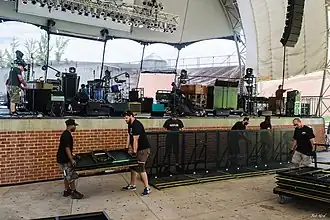 - A term, now archaic, originating from jazz musicians referring specifically a set of drums (kick, snare, toms, hi-hat etc.)