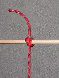 Clove hitch: The Clove hitch is used in belay systems among other things. |