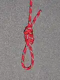Blake's hitch: Blake's hitch is widely used in tree climbing applications. The knot can be slid up and down a line manually, but when loaded, it sticks securely. |