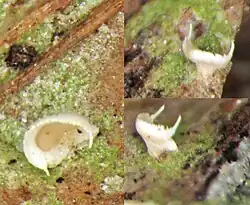 Plural apothecia. A type of ascocarp that is open, saucer-shaped or cup-shaped, and in which the hymenium is exposed at maturity.[38] The term was first used by Erik Acharius in 1803.[3]