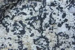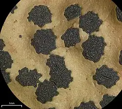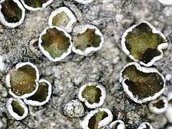 Closeup of some areolae and lecideine apothecia of Porpidia flavocaerulescens