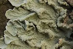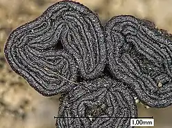 Having a surface texture that is deeply wrinkled or convoluted in a manner resembling the structure of a brain. The term is used to characterize the appearance of certain lichens with a complex, highly folded thallus.[92]