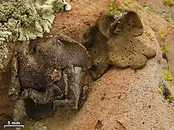 Grube, Martin; Hawksworth, David L. (2007). "Trouble with lichen: the re-evaluation and re-interpretation of thallus form and fruit body types in the molecular era". Mycological Research. 111 (9): 1116–1132. doi:10.1016/j.mycres.2007.04.008. PMID17698333.