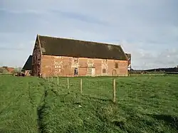 What remains of the medieval village today, consisted of a sunken way running east to west with two other roads running off to the south. Along both sides of the street can be seen banks and ditches separating individual house plots. About ten of these still remain to be seen. The church stood within a similar enclosure in an angle between the streets. At the eastern end of the site, the village street ran along a dam holding back a millpond with a small watermill at the far end. The line of the dam is now covered by farm buildings. In 1981 a remaining part of the church tower survived a collapse. The 13th-century church tower had been raised as a brick and flint folly when the church was pulled down in the 17th century. This folly may well have formed part of a scheme of landscape architecture for the later Godwick Manor. Inspection of the 1981 collapse found evidence of a Norman church amongst the rubble. Also still to be seen on the site is a large 13th-century red-brick barn with an elaborate façade, built over the line of the street. During the reign of Charles II, 200 men were garrisoned there and although access is barred, it is possible to walk round it and enjoy its beautiful windows.