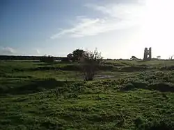 Godwick is a deserted village in the county of Norfolk. Its location was south of Fakenham between the villages of Tittleshall and Whissonsett. There are over 200 deserted medieval villages in Norfolk, but most sites have been destroyed by ploughing, the pressures of two world wars or other agricultural uses. Only a few still have impressive surface remains. The earthworks at Godwick are well preserved because the site is grazed by sheep and has never been disturbed. Today it is one of the best surviving examples in the county and the only one open to the public. There is agreement between the owner and English Heritage over the opening and the management of the site, which is open between April and September from 9:30 am until dusk.[1] On site there are information panels with displays of aerial photographs, maps and interpretation plans of this lost village. The earthworks are a scheduled monument. It is an offence to disturb the site or use metal detectors without the written permission of English Heritage.