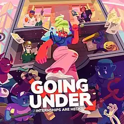 Going Under is a 2020 roguelike video game developed by Aggro Crab and published by Team17. The game follows an unpaid intern as she travels beneath her workplace to explore the ruins of failed startups. Going Under was released for the PlayStation 4, Xbox One, Nintendo Switch and Microsoft Windows on September 24, 2020.[1]