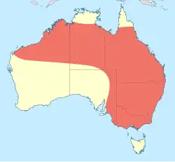 This damselfly species can be found in the Australian States of Australian Capital Territory, New South Wales, Northern Territory, Queensland, South Australia, Victoria, Western Australia.