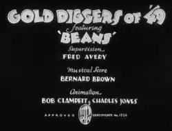 Gold Diggers of '49 is a 1935 Warner Bros. theatrical animated cartoon short in the Looney Tunes series. It was directed by Tex Avery and features Beans the Cat and Porky Pig.[3]