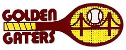 The Golden Gaters were founded as WTT's charter franchise for San Francisco, California in 1973, by former tennis player Cathie Anderson and attorney Larry King, then the husband of tennis superstar Billie Jean King.[1] Anderson was the team's first president. The team played its home matches at the Oakland–Alameda County Coliseum Arena in Oakland, California starting with the league's inaugural season in 1974 season. While the team was founded as a San Francisco franchise, it ended up playing its home matches across the San Francisco Bay in Oakland. The Golden Gaters' management sought to cultivate a San Francisco rather than an Oakland image for the team, and it did not put "Oakland" in front of its name. Nevertheless, the team did not want to alienate East Bay fans by using San Francisco as part of its name.[2] The first name the franchise used was the Golden Gate Otters[3] before settling on simply calling itself the Golden Gaters in its dealings with the general public. Since it would have been absurd to call the team the Golden Gate Golden Gaters, and the league used a location to identify all its teams, WTT reverted to using San Francisco, the location for which the original charter was issued, when referring to the team. They were listed in official WTT standings as the San Francisco Golden Gaters.[4]