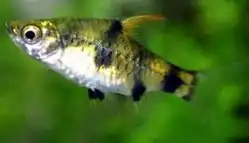 The golden barb or golden dwarf barb (Pethia gelius) is a species of cyprinid fish native to inland waters in Asia, and is found in Pakistan, India, and Bangladesh. It has also been introduced to waters in Colombia. It natively inhabits rivers, and standing water with a silty bottom. They live in a tropical climate in water with a 6.0 - 6.5 pH, a water hardness of 8–15 dGH, and a temperature range of 68–77 °F (20–25 °C). It feeds on benthic and planktonic crustaceans, and insects. This species can grow in length up to 5.1 centimetres (2.0 in) TL. It can also be found in the aquarium trade.[2]