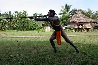Golden poison frogs are a very important frog to the local indigenous cultures, such as the Emberá and Cofán people in Colombia's rainforest.[4] The frog is the main source of the poison in the darts used by the natives to hunt their food. The Emberá people carefully expose the frog to the heat of a fire, and the frog exudes small amounts of poisonous fluid. The tips of arrows and darts are soaked in the fluid, and remain deadly for two years or longer.[13]