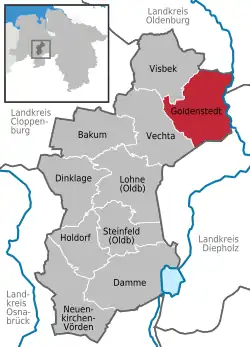 Goldenstedt is a municipality in the district of Vechta, in Lower Saxony, Germany. It is situated on the river Hunte, approximately 12 km northeast of Vechta.
