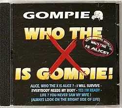 Gompie was a Dutch band from Nijmegen, which in 1995 edited the Smokie hit "Living Next Door to Alice", adding the words "Alice, who the fuck is Alice!?". The song reached number 1 in the Netherlands[1] and number 17 in the UK.[2] Who the X Is Gompie! is the name of the album they released in 1995.